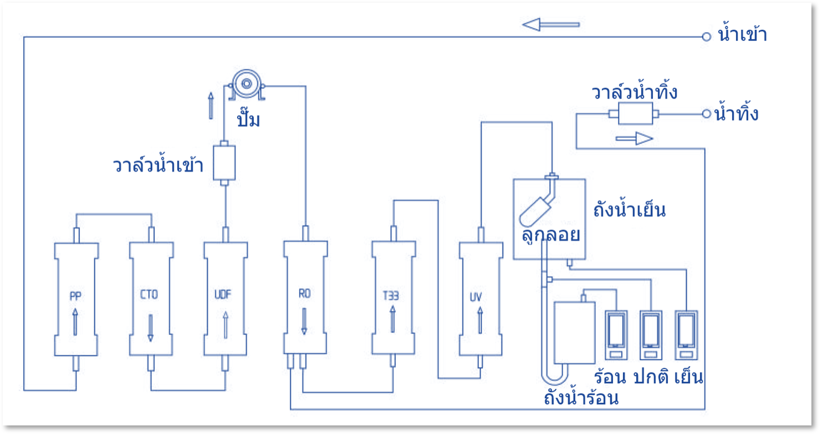 - ขั้นตอนที่ 6 แสงยูวี (UV light): ระบบฆ่าเชื้อด้วยแสงยูวี กำจัดเชื้อโรคต่าง ๆ