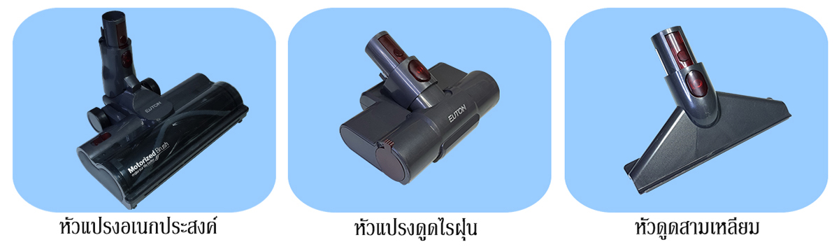 ทำความสะอาดพื้นได้ทุกชนิด ทุกซอกทุกมุม และแหล่งสะสมไรฝุ่น เช่น ฟูก ที่นอน หมอน โซฟา พรม ผ้าม่าน