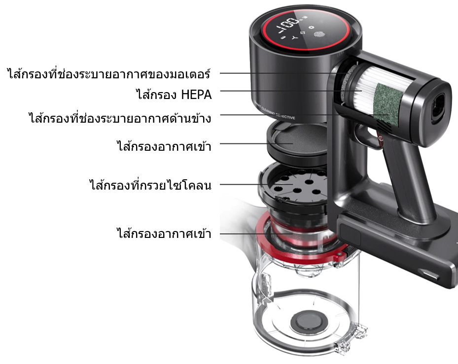 เครื่องดูดฝุ่น EUTON VC26 มีระบบกรองฝุ่นด้วยไส้กรอง HEPA และไส้กรองผ้ารวม 6 ชั้น